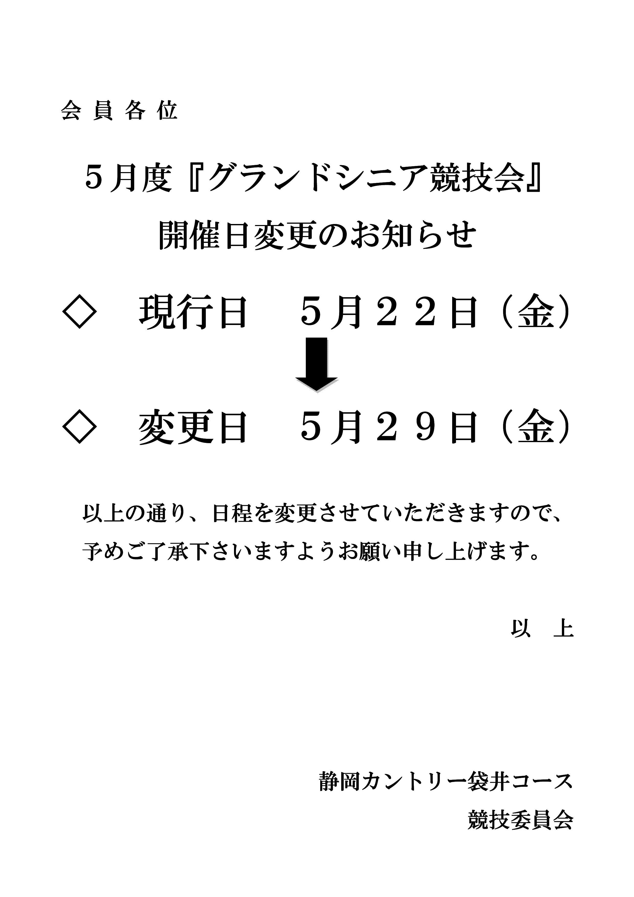 2026年5月度グランドシニア競技会開催日変更のお知らせ